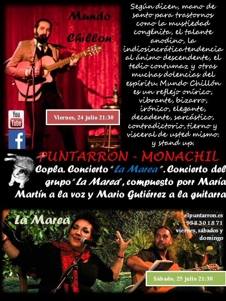 El próximo Viernes 24 de julio en el Restaurante El Puntarrón a partir de las 21:30 frenesí y desacato a partes iguales, brisa serrana y carta selecta.